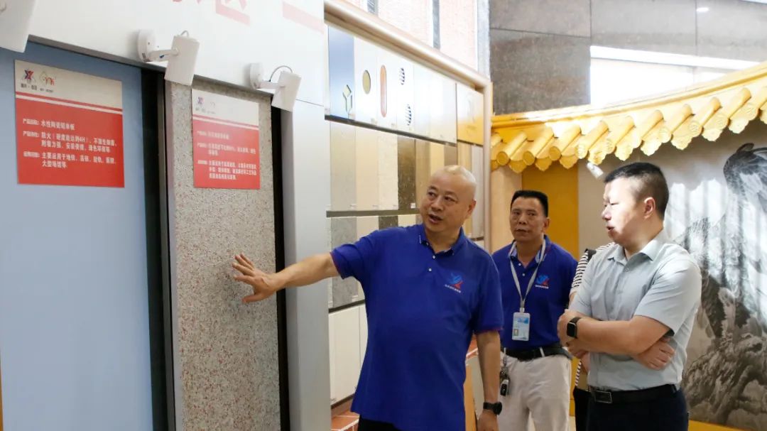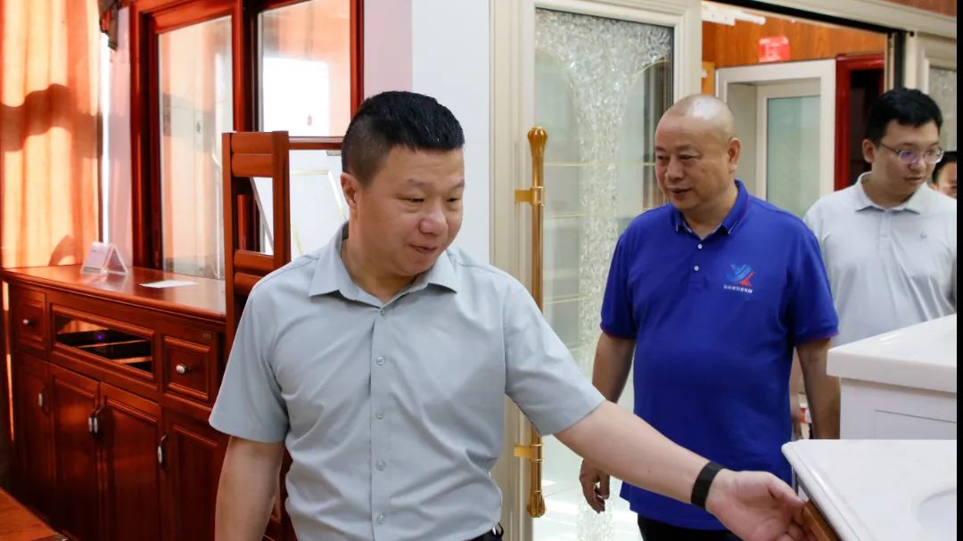 新西亞鋁業集團常務副總經理周雄攜相關部門負責人熱情接待了程主任一行,并陪同程主任一行先后參觀了集團公司鋁裝飾展廳、依萊卡全鋁智能(智慧)家居展廳、黨群活動室、文化長廊等區域并作了詳細介紹。
