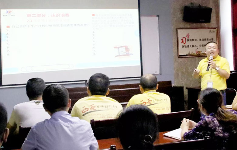最后,公司董事長劉斌對整個培訓進行了總結。他指出:今天的培訓,是踐行公司“三大管理”的重要舉措,是公司推行系統化建設的有效嘗試。他強調幾點:一是各部門負責人一定要高度重視精益生產管理,一定要結合自己崗位的薄弱環節,抓好精益管理;二是抓精益管理,一定要從轉變思想觀念開始,立即行動;三是公司要全面提升生產經營管理水平,提升企業競爭力,提升品牌影響力,一定要靠抓精益管理來實現。四是生產現場的5S、6S管理,我們大力提倡的“工匠精神”一定要與精益管理實現高度融合。五是公司相關部門要大力宣傳精益管理,在全公司氛圍內營造聲勢,提高全體員工對精益生產管理的認識,使精益管理思想深入人心,為全面推行精益管理營造良好的輿論環境。