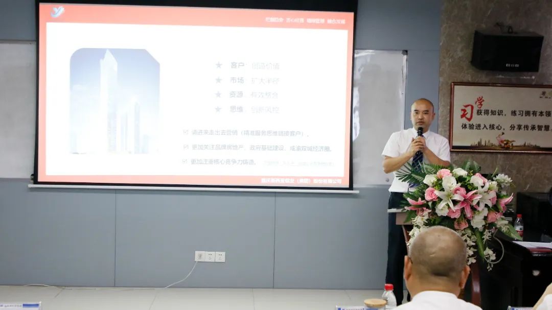 針對集團(tuán)公司下半年的市場開發(fā)工作:劉總從“為客戶創(chuàng)價值、擴(kuò)大市場半徑、有效整合資源、創(chuàng)新風(fēng)控思維、請進(jìn)來走出去融合營銷(精準(zhǔn)服務(wù)思維去鏈接客戶)、成渝雙城經(jīng)濟(jì)圈、更加注重核心競爭力鑄造”等方面進(jìn)行了深度闡述,為市場人員如何在激烈的市場競爭中搶抓訂單指明了方向;關(guān)于品牌(文化)經(jīng)營,劉總指出:“一年企業(yè)靠運氣,十年企業(yè)靠經(jīng)營,百年企業(yè)靠文化”!要求全體新西亞家人認(rèn)真踐行集團(tuán)公司經(jīng)過12年精心培育、打造、根植于新西亞熱土的企業(yè)文化,使新西亞企業(yè)文化真正成為支撐企業(yè)高質(zhì)量發(fā)展,鍛造員工隊伍、激勵員工成長的重要法寶。