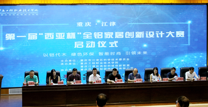 江津區第一屆“西亞杯”全鋁家居創新設計大賽于6月14日在重慶工程職業技術學院正式啟動。江津區科委副主任張毅、重慶工程職業技術學院副校長吳再生、重慶西亞鋁業(集團)公司董事長劉斌以及江津區高校科技創新聯盟的七所高等院校相關領導、師生,共計300余人參加了啟動儀式。