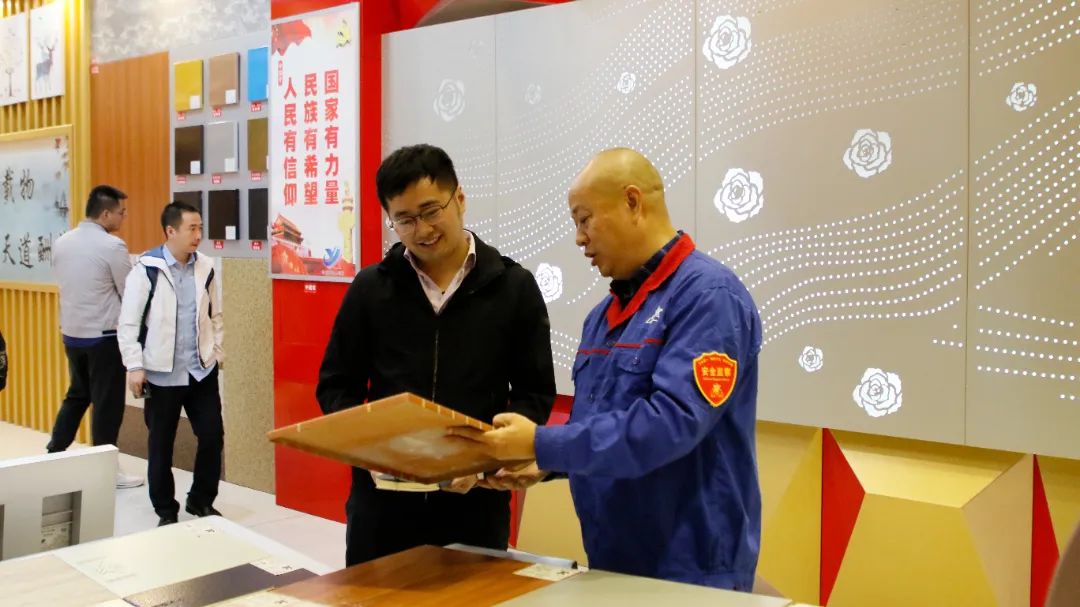 集團公司常務副總經理兼鋁裝飾事業部執行總經理周雄陪同客人參觀了展廳,就公司產品、文化、創新等內容向客人作了詳細介紹;參觀過程中,雙方就產品加工、表面處理工藝、市場占有率、應用場景等方面進行了深入溝通交流,客人對公司鋁產品創新方面的成績表示高度贊賞。