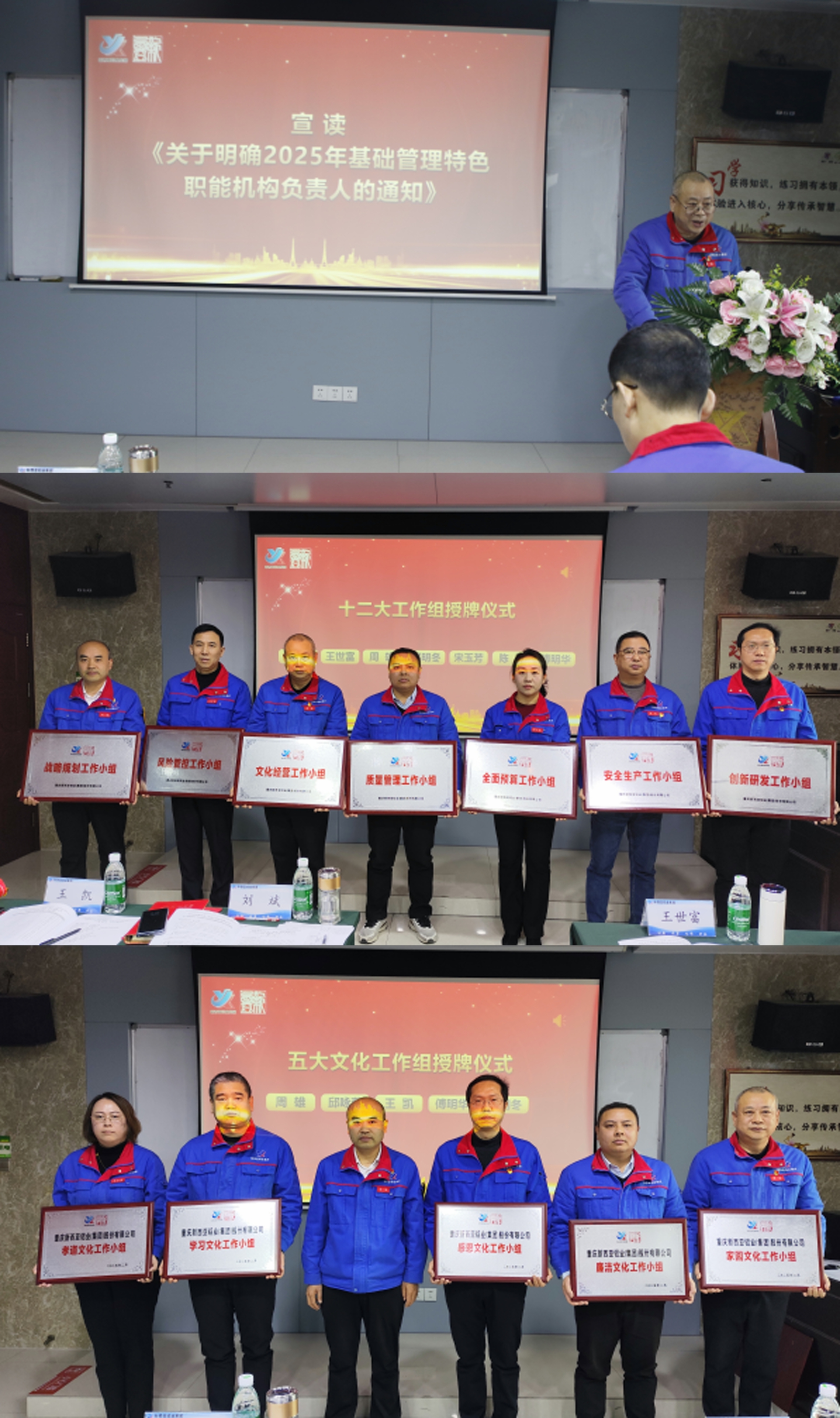 總經理助理周雄宣讀《關于明確2025年基礎管理特色職能機構負責人的通知》,明確了各特設機構的職能職責。劉斌董事長和監事會主席王世富為特設機構負責人授牌,進一步強化了公司的基礎管理。