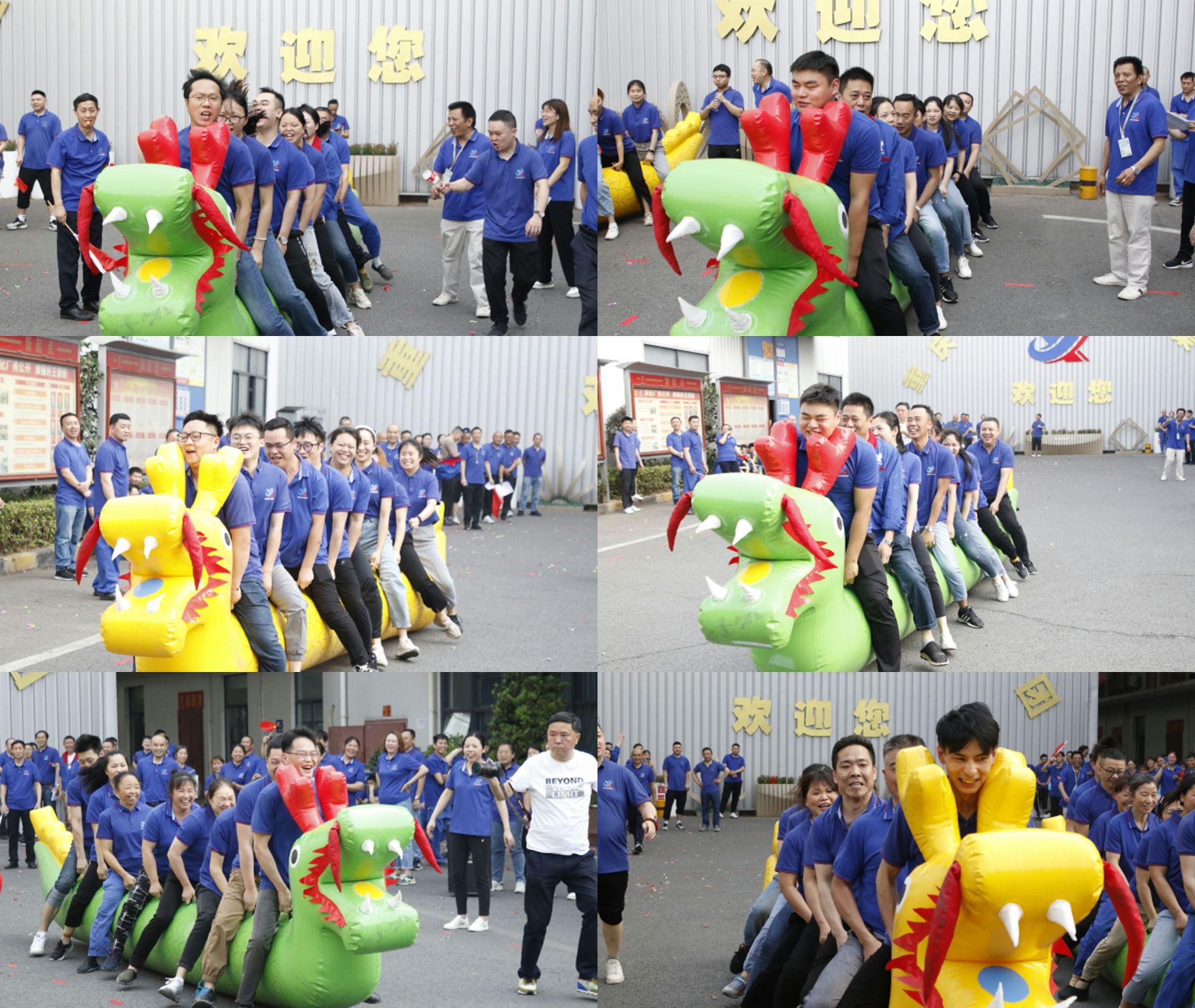 本次運(yùn)動會趣味與運(yùn)動兼顧,競爭與團(tuán)結(jié)共存,共設(shè)置“拔河比賽”“迎面接力賽”“旱地龍舟”“東南西北跑”四個項(xiàng)目,六個參賽隊(duì)伍依次展開角逐。