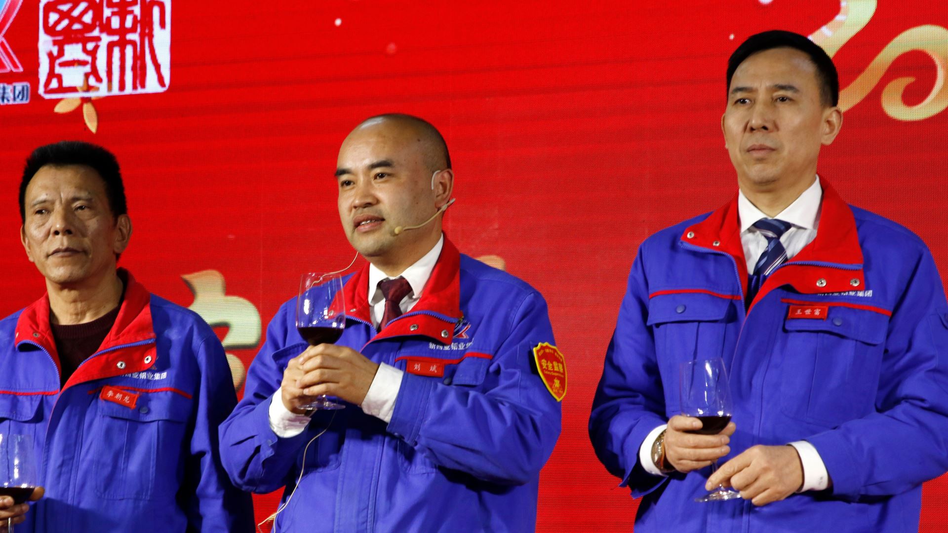 在新春團拜會宴會上,集團公司總經理劉斌攜全體股東、經營班子登臺,共邀在場的來賓及員工舉杯同慶。
