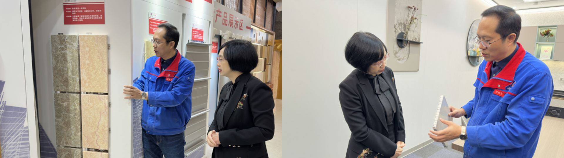 在集團公司工會主席傅明華的陪同下,鄒芝蘭副主席一行參觀了公司鋁裝飾、鋁家居產品展廳,以及黨群活動室、職工書屋、職工活動中心、工匠工作室、心理咨詢室等功能區域和工會陣地運行情況。
