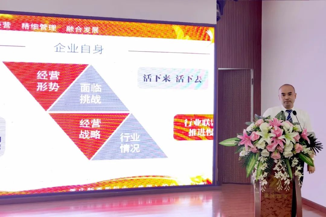 集團公司總經理劉斌從企業戰略發展高度,深刻剖析了企業經營環境所面對的諸多不確定因素,企業生產經營面臨前所未有的困難和挑戰。審時度勢提出了“把握趨勢、苦心經營、精細管理、融合發展”的集團公司下半年工作思路。劉總經理殷切地告誡全體新西亞家人,必須保持“在崗一分鐘,奮戰60秒”的奮斗精神,凝心聚力“活下來”;必須發揚新西亞員工特別能吃苦,特別能戰斗的奉獻精神,改革創新“活下去”。在裂變中重生、在奮斗中成長、在感恩中收獲、在成長中快樂。