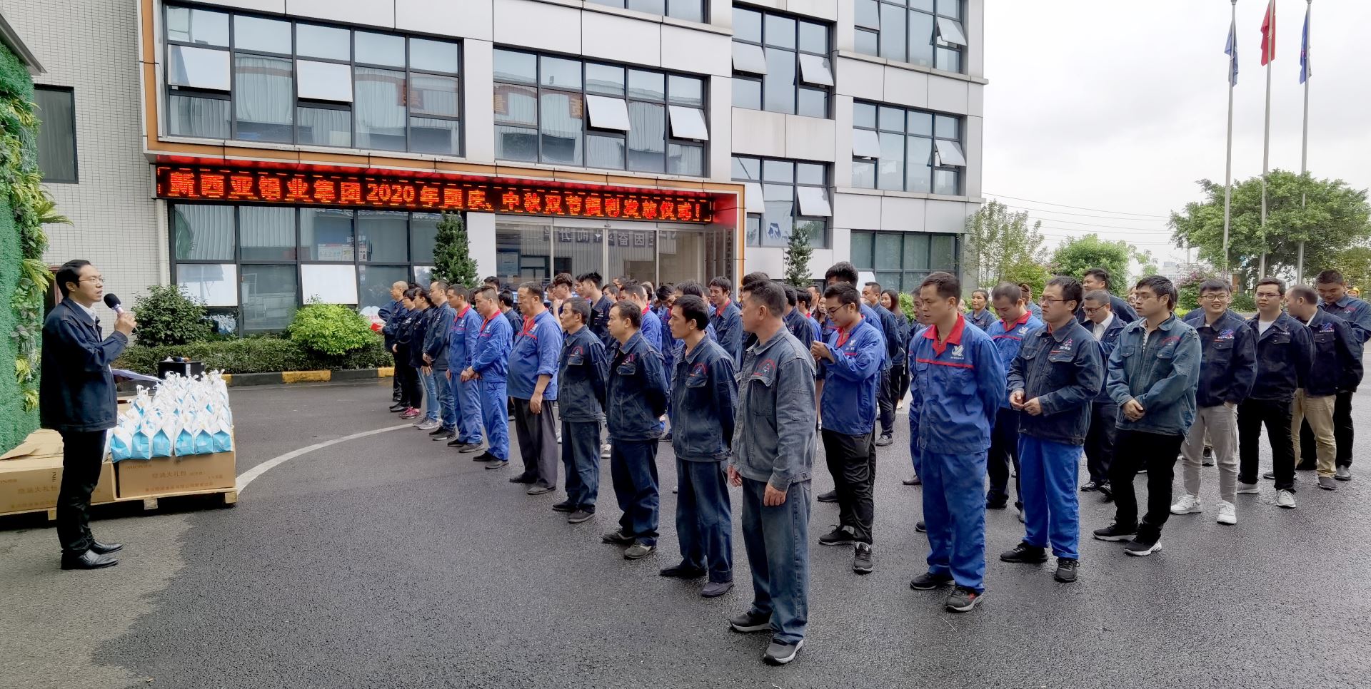 秋風(fēng)送爽結(jié)碩果,丹桂飄香迎佳節(jié)。在2020年國(guó)慶、中秋“雙節(jié)”來(lái)臨之際,為營(yíng)造濃郁的節(jié)日氛圍,增加員工歸屬感,增強(qiáng)凝聚力和向心力,9月26日,新西亞鋁業(yè)集團(tuán)在中庭廣場(chǎng)開(kāi)展了國(guó)慶中秋雙節(jié)福利發(fā)放儀式。公司副總經(jīng)理、工會(huì)主席傅明華主持儀式,110名員工代表參加。