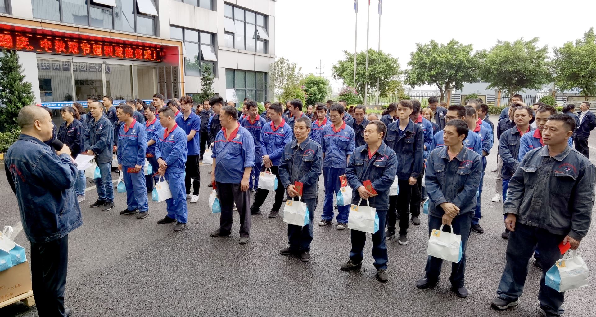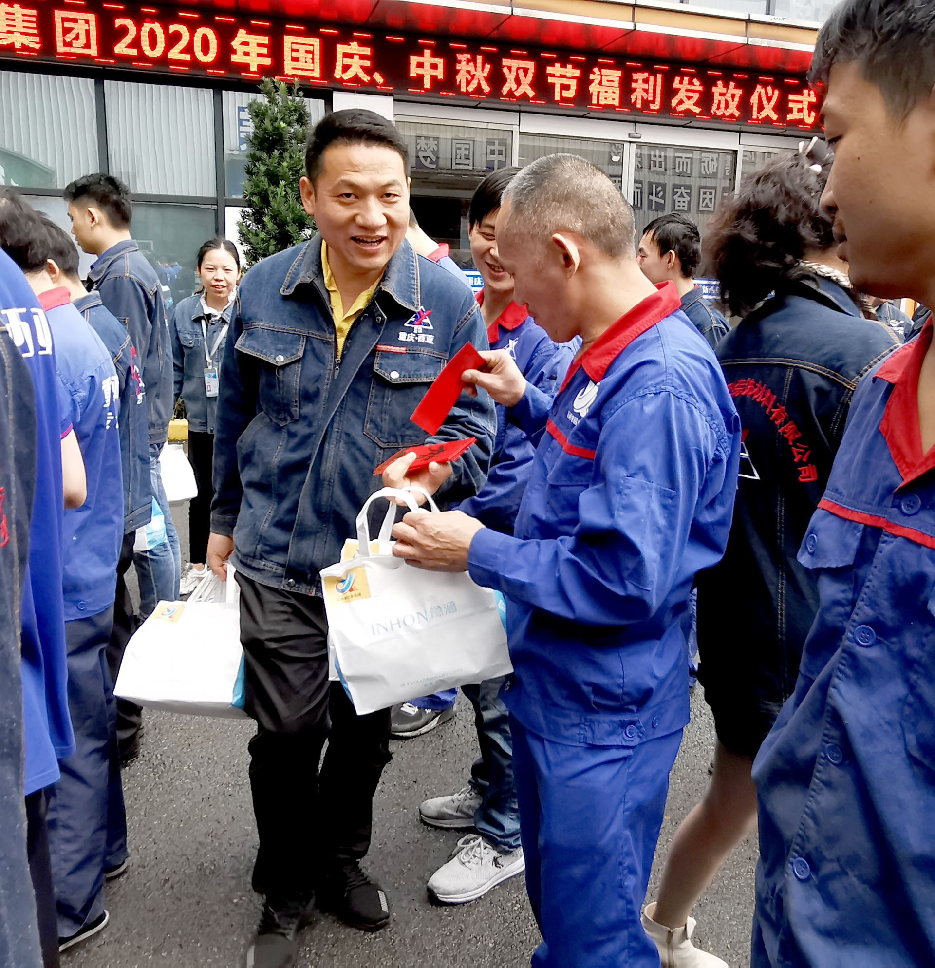 活動(dòng)現(xiàn)場(chǎng),經(jīng)營(yíng)班子成員將國(guó)慶中秋雙節(jié)福利禮品和員工家屬慰問(wèn)金發(fā)放到每一位員工手中。