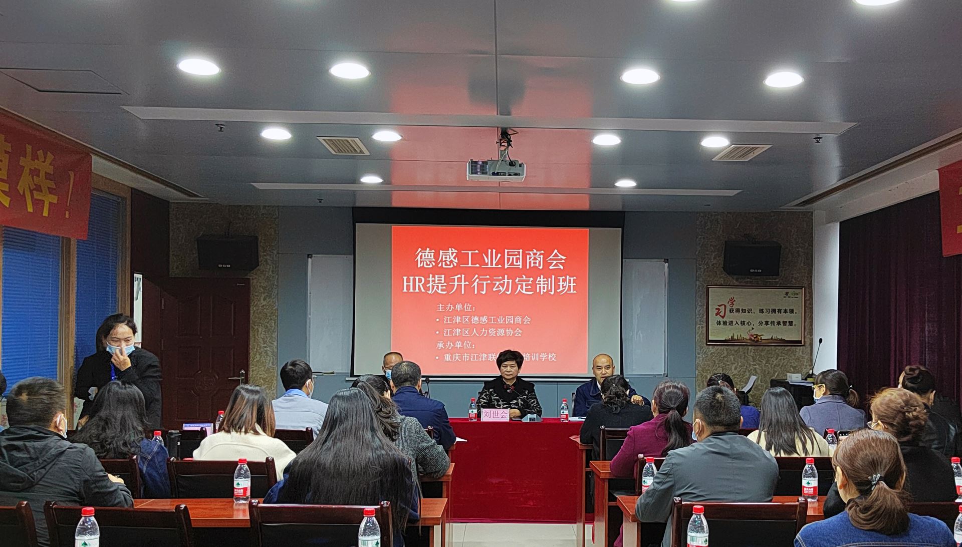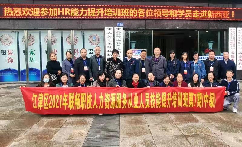 2021年10月29日,由江津區人力資源協會和德感園區商會共同舉辦,江津聯暢職業培訓學校承辦的德園商會《HR能力提升培訓班》在重慶新西亞鋁業(集團)股份有限公司三樓商學院教室舉行。江津區德園商會會長、新西亞鋁業集團董事長兼總經理劉斌,江津區人力資源協會會長、多贏創嘉文化傳播有限公司董事長劉世會,江津聯暢職業培訓學校校長曾維民,江津區人才和就業服務局工作人員以及培訓班學員近40人參加儀式。